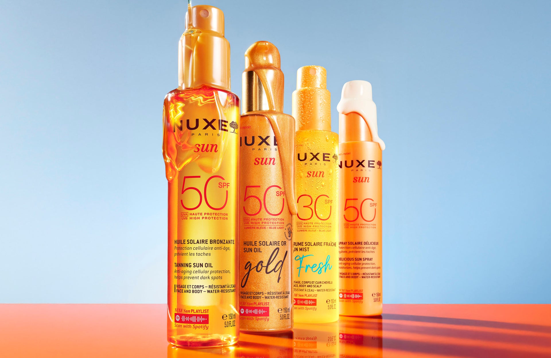 ⁽¹⁾ Protezioni solari NUXE Sun eccetto: Olio solare abbronzante bassa protezione SPF10, Olio solare abbronzante alta protezione SPF30, Spray solare delizioso alta protezione SPF30, Latte solare fondente alta protezione SPF30, Crema solare fondente alta protezione SPF30, Olio solare abbronzante alta protezione SPF50, Spray solare delizioso alta protezione SPF50, Fluido leggero solare alta protezione SPF50, Olio latte per capelli protettivo idratante.