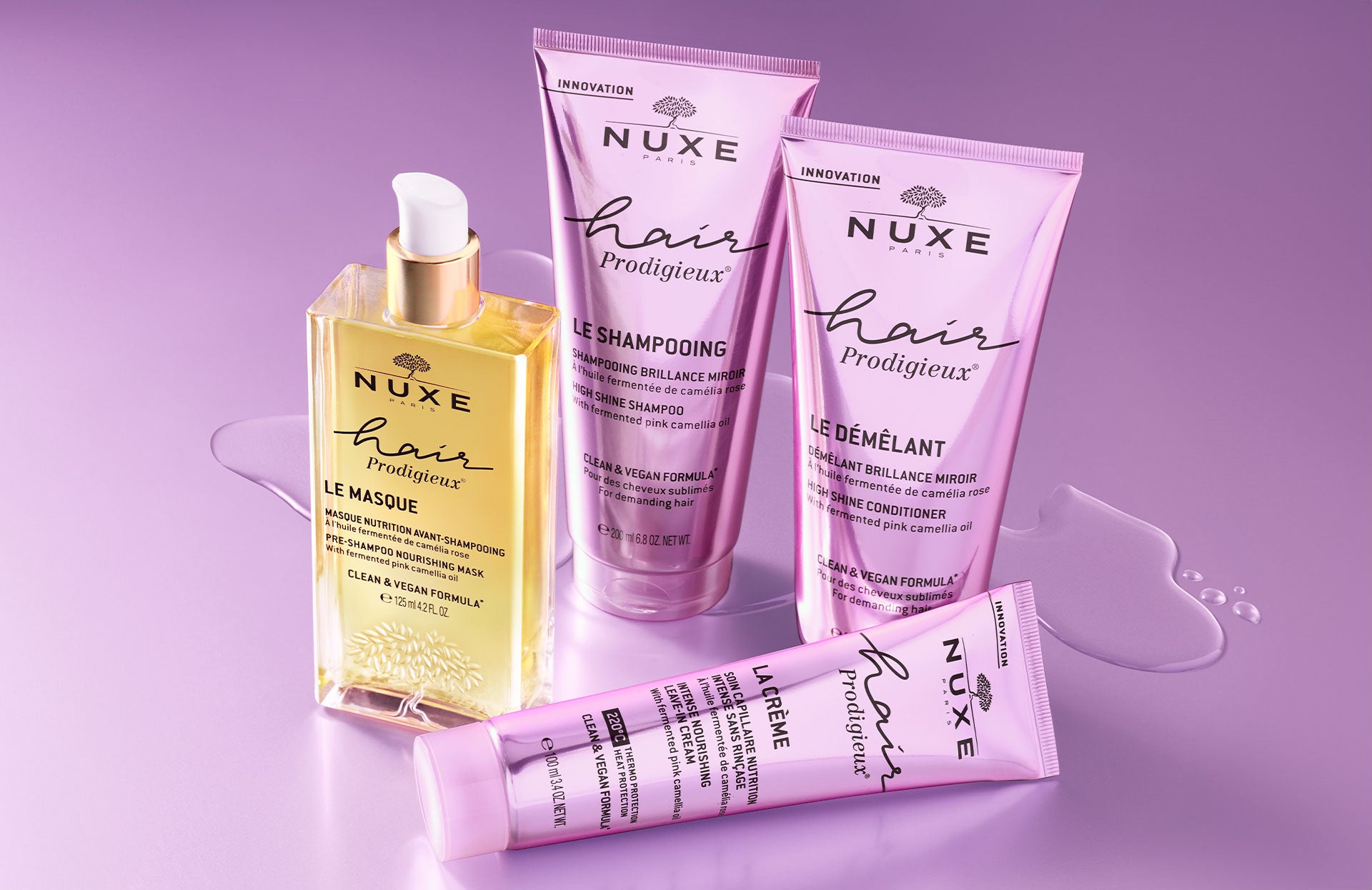NUXE lancia la 1a collezione di trattamenti per capelli, che concentra un’innovazione fondamentale in termini di formulazione: l’olio fermentato di camelia rosa. È ottenuto mediante un processo di formulazione unico che galvanizza le sue proprietà di riparazione e nutrienti sui capelli. Vegani⁽²⁾, senza silicone, senza solfato(₁₁), questi trattamenti sono formulati nel rispetto dei capelli e li avvolgono con una firma sensoriale unica. Fedele alla sua audacia, NUXE propone anche un gesto innovativo ultra-efficace per riparare i capelli, la Maschera nutriente pre-shampoo.