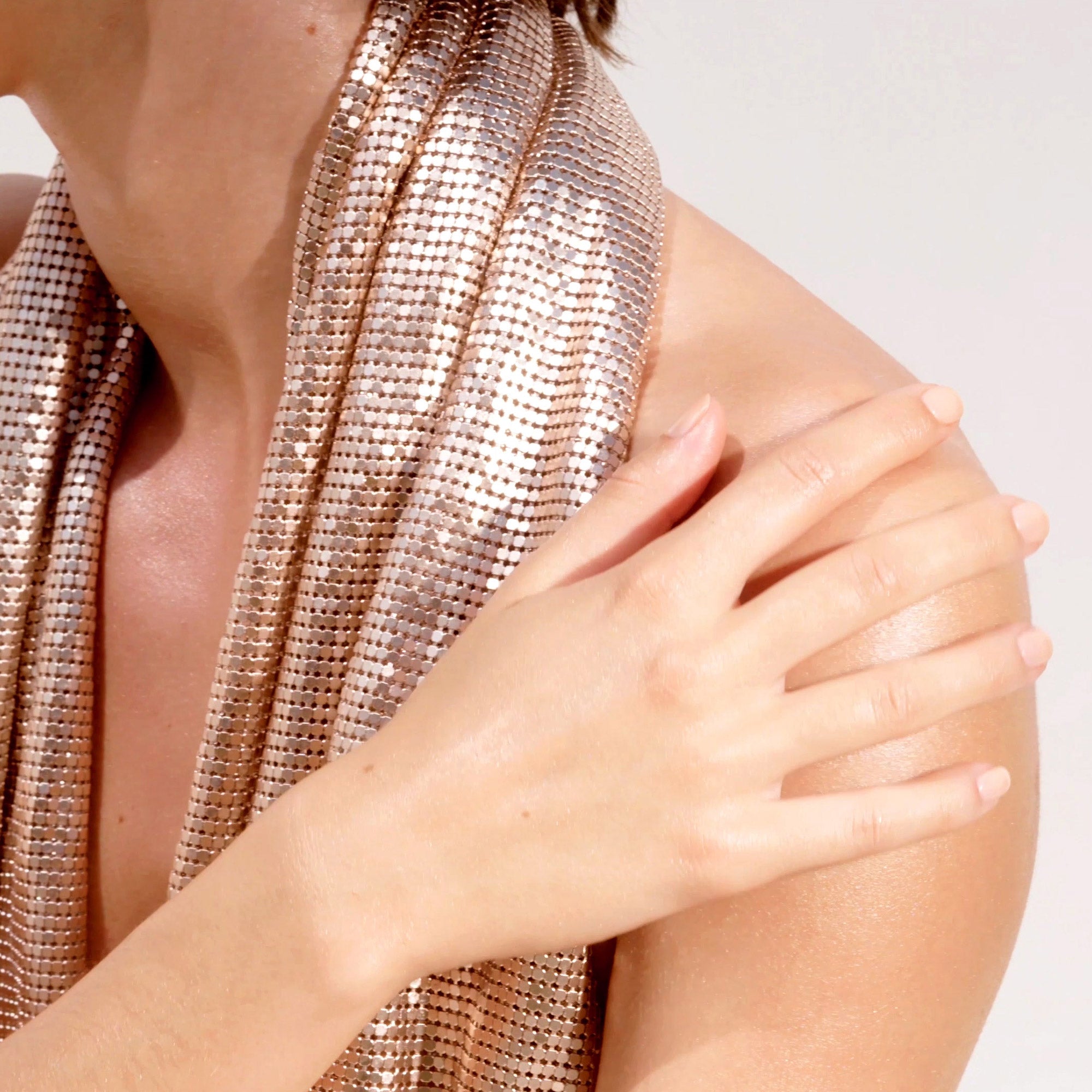 Quest’olio secco illuminante con madreperle di origine naturale regala un’irresistibile finish dorato rosa perlato a tutti i tipi di pelle. Idrata, satina e illumina in un solo gesto viso, corpo e capelli. La pelle è esaltata, morbida e setosa, senza essere unta.