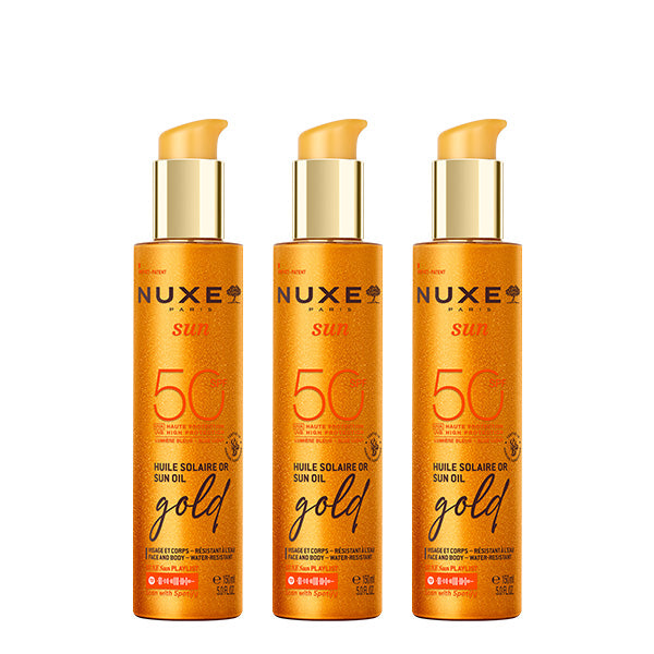 Questo Olio solare dorato SPF50 viso e corpo assicura una protezione a ampio spettro contro gli UVA/UVB e la luce blu grazie a un sistema filtrante brevettato esclusivo⁽²⁾. Offre una protezione cellulare anti-età rinforzata⁽³⁾, prevenendo la comparsa delle macchie. Resistente all’acqua e non comedogenica, è adatta a tutti i tipi di pelle.